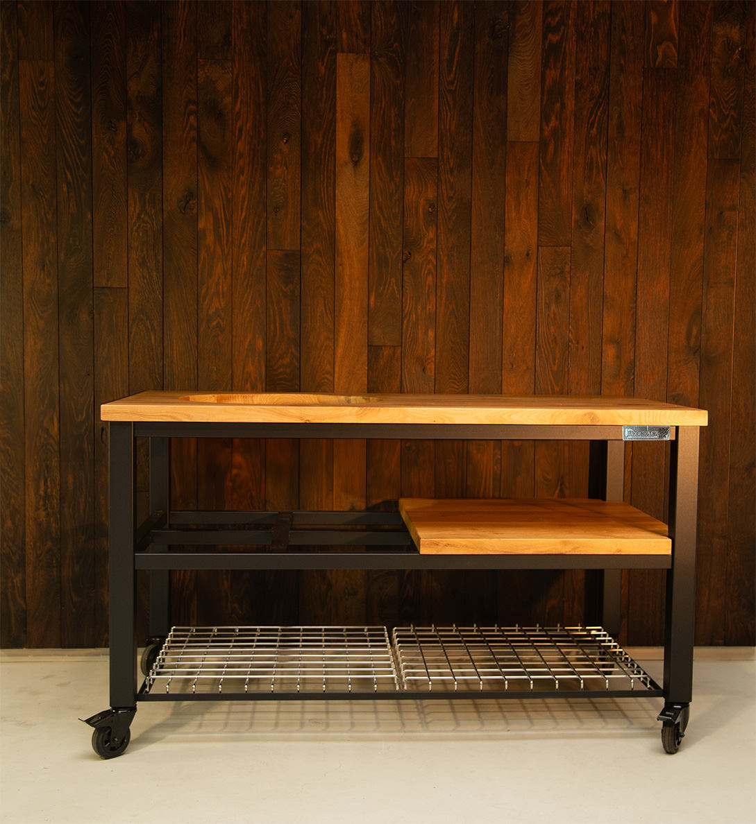 Onze BBQ tafels zijn verkrijgbaar met een massief eiken werkblad voor een warme, natuurlijke uitstraling of een granieten blad voor een luxe en onderhoudsvrije afwerking.